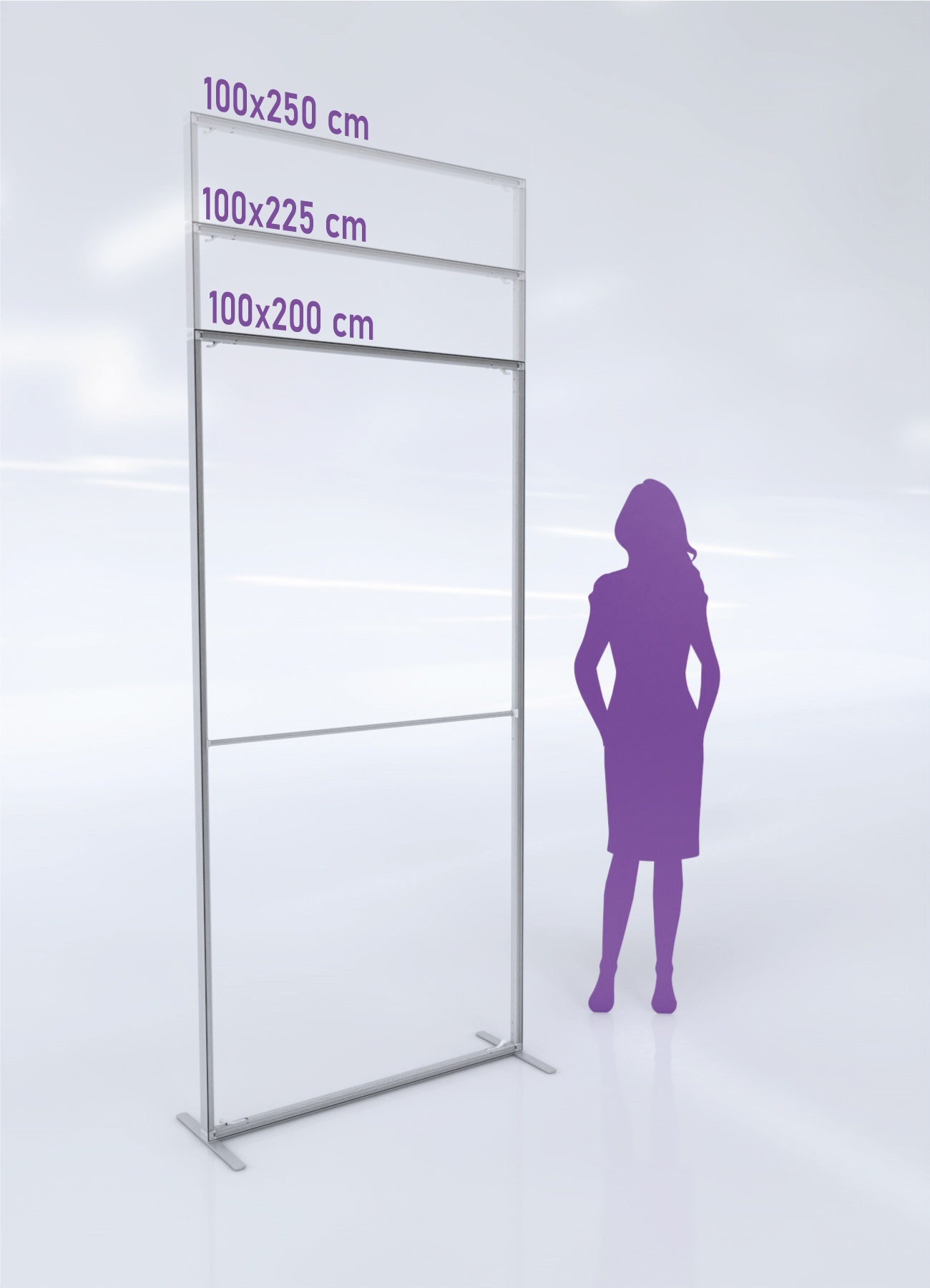 Dans la catégorie des totem PLV, le Q Frame 100 est la meilleure solution à la fois écologique, durable et économique pour créer vos stands et photocall ! Le totem Q Frame 100 est un cadre sur pieds en aluminium léger et solide de de format : L 100cm x H 200cm qui se monte sans outils en moins de 5 minutes et permet une communication recto / verso. Grâce à différents accessoires comme les rehausses (25cm ou 50cm), les connecteurs (droit, d'angle, en croix) et les spots LED, il permet une grande modularité et donc de créer des combinaisons de murs d'images, de stands et même de labyrinthes à l'infini selon vos besoins et contraintes. Les Q Frame sont parfaits si vous exposez plusieurs fois dans l'année car ils s'adaptent à toutes les surfaces. Vous pourrez faire des stand en L et en U ou même des murs d'images de 10m si vous le souhaitez.