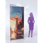 L'impression est en haute définition et se fait par sublimation (encres écologiques aqueuses sans solvant) sur une toile tendue recyclée en polyester de 260g/g traitée anti-feu aux normes européennes B1 , avec un dos noir, offrant une opacité et un visuel plus impactant. Le format généreux du cadre la rend parfaitement visible pour divers espaces. De plus, elle bénéficie d'une finition soignée, incluant un jonc en silicone cousu tout autour.