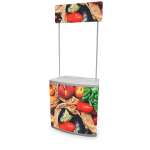 Le comptoir éphémère peut être utilisé uniquement en intérieur. Sa structure stable et légère en fait un comptoir de démonstration ou d'accueil très facile à transporter et installer. Il offre également deux espaces de communication avec son fronton et sa jupe personnalisables. En outre, le comptoir d'accueil éphémère comporte une étagère afin de garder des documents ou du stock près de vous. Il est indispensable durant la crise pour accueillir vos visiteurs et définir une zone d'accueil.