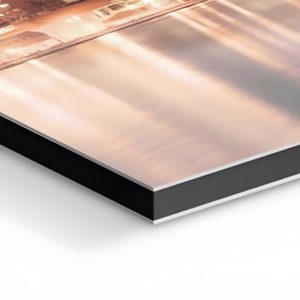 Le dibond est un matériau composé de deux fines feuilles d'aluminium prenant en sandwich un noyau de polyéthylène. On l'utilise couramment dans les industries de la signalisation et de l'affichage pour sa durabilité, sa rigidité et sa résistance aux intempéries. On l'utilise également dans des applications de construction, enseigne et architecture. Mais il est surtout très populaire dans le domaine de l'impression numérique et de la photographie pour les expositions d'art. c'est un choix privilégié en décoration et en art en raison de sa qualité exceptionnelle. Il permet des impressions nettes et vibrantes grâce à sa surface lisse et stable. Sa durabilité assure que les œuvres conservent leur éclat au fil du temps, que ce soit en intérieur ou en extérieur.