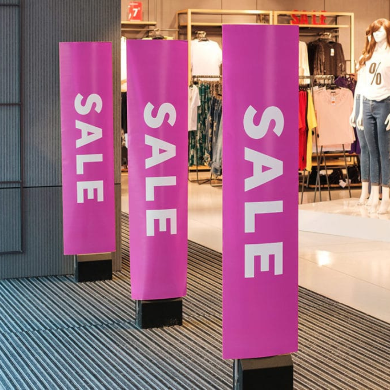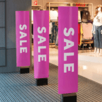 Profitez des barrières antivols de sécurité pour communiquer ! En entrée de magasin, ces impressions habilleront ces barrières sur un lieu de passage très fréquenté.