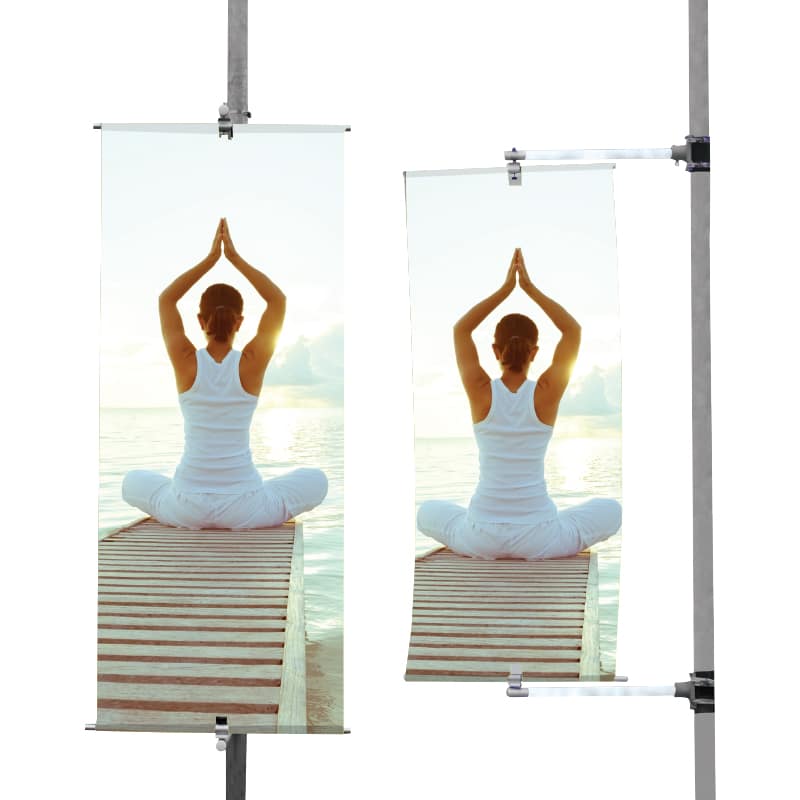 Offrant une plus grande surface de communication, le drapeau Mistral PLV trouve aussi sa place sur le marché des visuels flottants. Equipé d’une potence qui assure la verticalité du visuel, ils sont devenus incontournables en bordure de voie, où ils ornent les parkings des concessions automobiles et de certains commerces. Le drapeau Mistral peut être accroché aussi bien à un mur qu’à un poteau. L’aluminium de son mât horizontal le rend résistant aux intempéries. Ces drapeaux sont idéaux pour une utilisation aussi bien en intérieur qu’en extérieur. Ils sont également faciles à installer et parfaits pour des visuels en bâche ou en tissu.