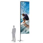 Donnez de la hauteur à votre communication en optant pour le Giant Flag E ! Disponible en différents formats et jusqu'à 6,5 m de haut, cet oriflamme de grande envergure saura attirer de nouveaux clients lors de salons ou à proximité de votre point de vente.