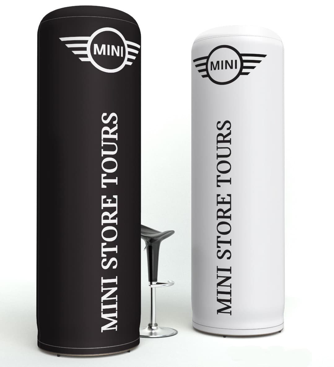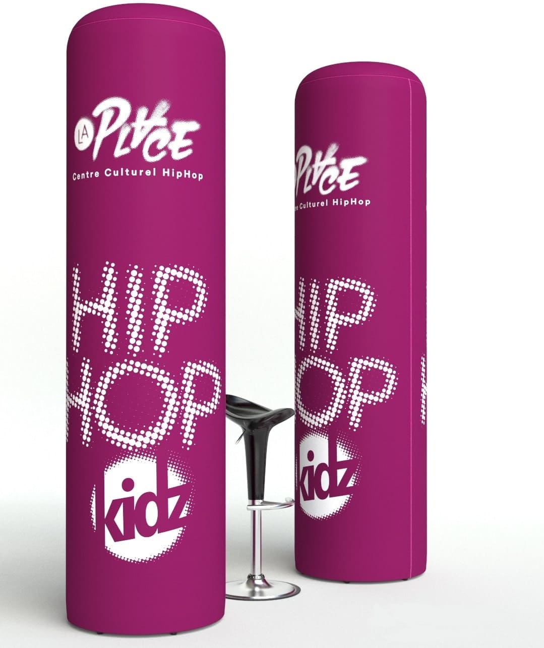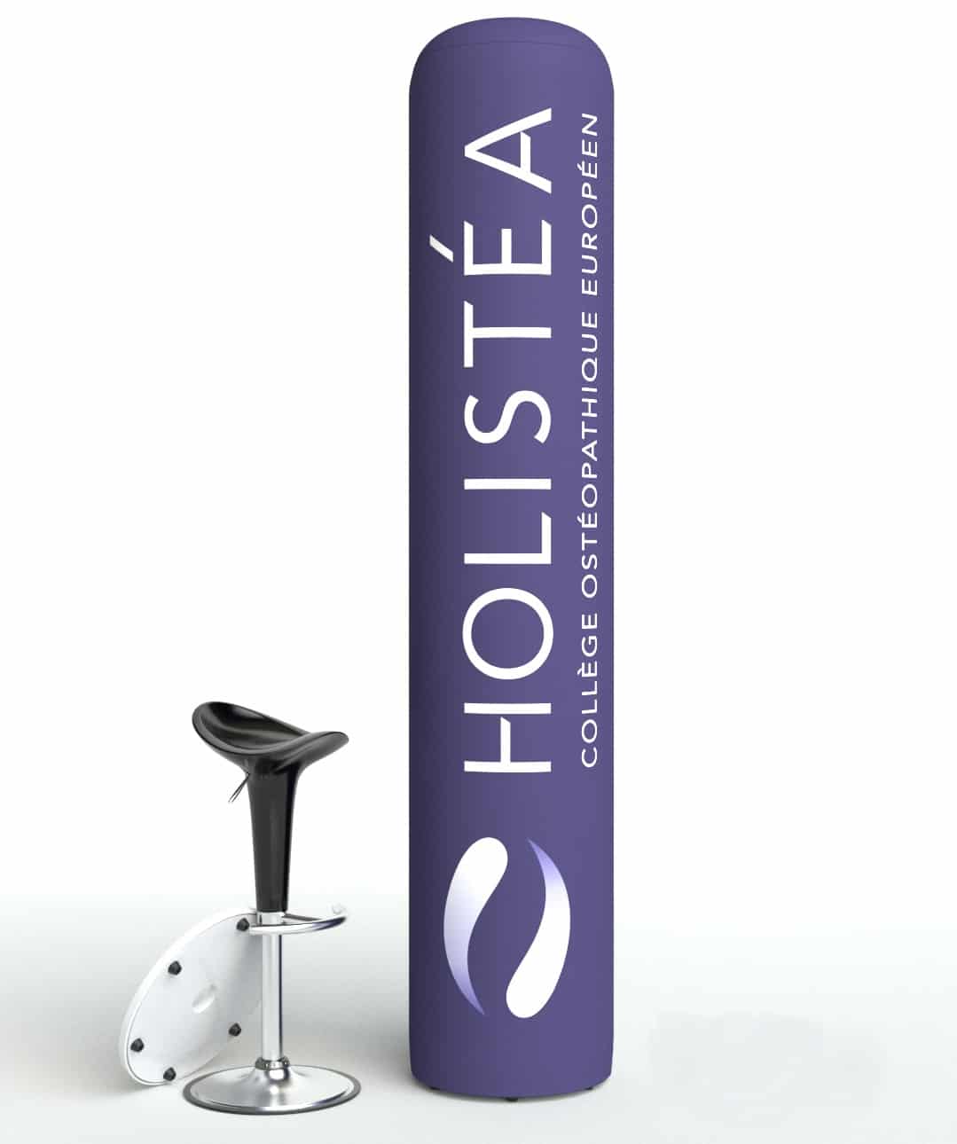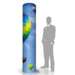 La colonne gonflable à air captif publicitaire est le média idéal pour événements intérieurs et pour créer un aspect dynamique. Une pompe de gonflage et de dégonflage de 150 Watts est intégrée au plateau bas de la structure. Nous vous livrons et montons la colonne entièrement : vous n’avez qu’à appuyer sur le bouton pour gonfler votre produit. Un branchement électrique est nécessaire pour le montage de la colonne. Une fois la colonne gonflée, le câble se range à l’intérieur de la structure et il n’est plus nécessaire d’avoir une source de courant. On imprime le visuel en sublimation sur une toile polyester en all-over et se monte à son extrémité avec un joint en silicone pour fixer la toile au plateau inférieur.