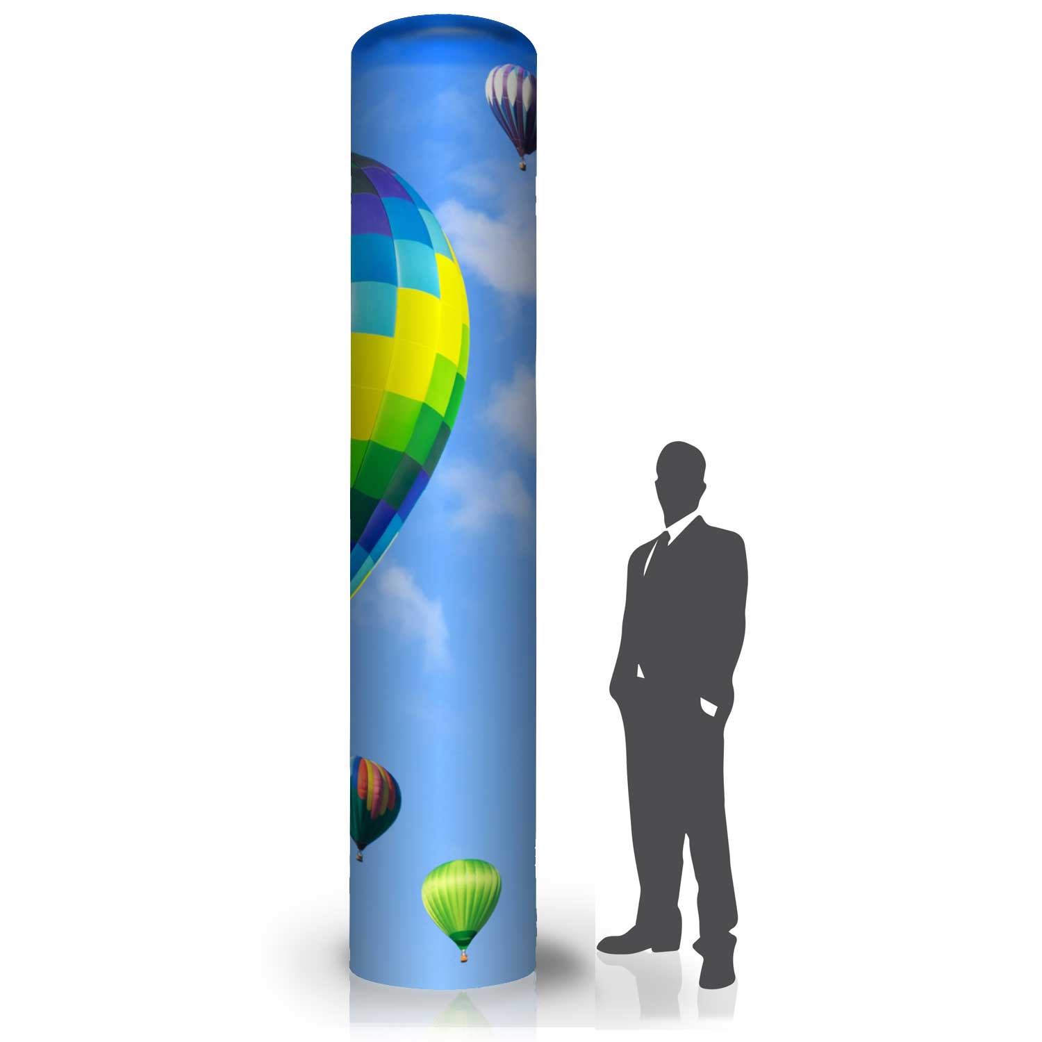 La gaine se fixe à l'aide d'une bande velcro à la base. Les colonnes gonflables sont disponibles dans une grande variété de tailles et de formes. Elles sont généralement faciles à déplacer et à ranger lorsqu'elles ne sont pas utilisées. Elles sont également généralement moins chères que les structures gonflables traditionnelles et nécessitent peu d'entretien.