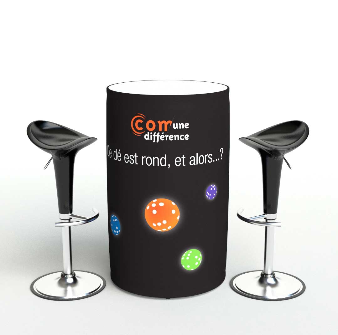 Le mange debout gonflable format "canette" est une nouvelle colonne gonflable à air captif. Le produit se constitue d’une structure gonflable recouverte d’une toile polyester montée sur un plateau PVC en bas et en haut. Le mange debout est facilement transportable car léger et peu encombrant. Une valve au centre du plateau inférieur permet de gonfler et de dégonfler la structure très rapidement.