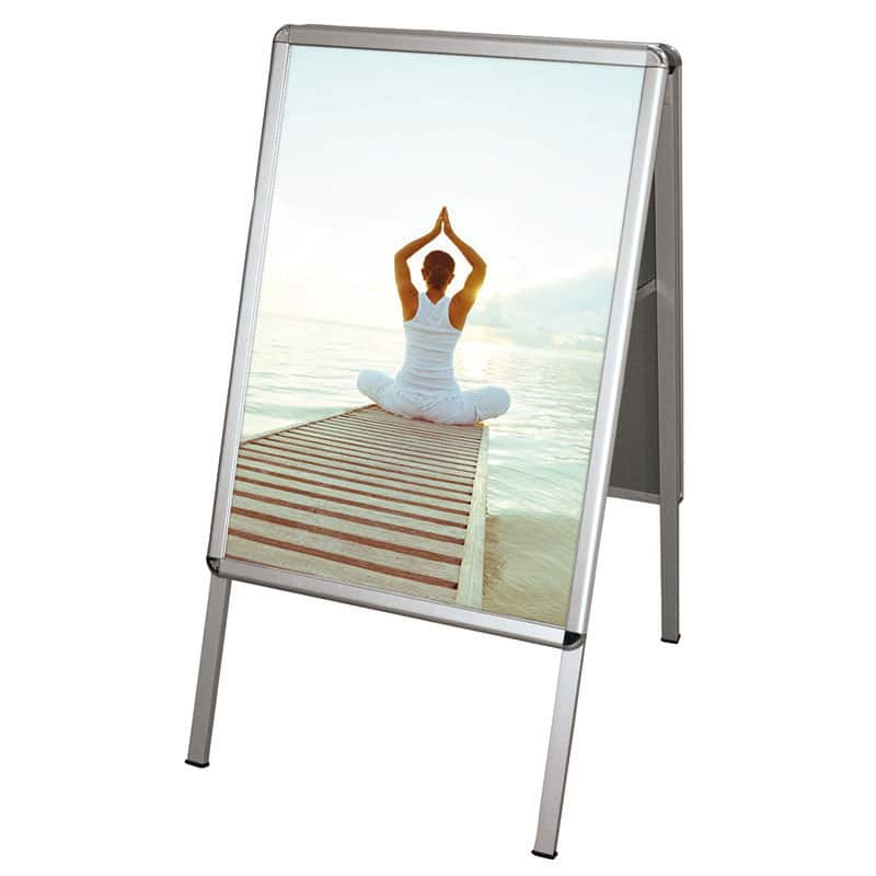 Le Chevalet PLV est une PLV extérieure ou intérieure, vous permettant de signaler votre point de vente. Fabriqué en acier galvanisé et aluminium, ce chevalet vous offre la possibilité de changer facilement les visuels. C’est un panneau publicitaire double-face de grandes dimensions, équipé de deux tableaux en aluminium dotés de feuilles de protection en film transparent pour rendre votre message résistant et durable. Idéal à exposer à l'occasion des soldes, d'inaugurations, d'événements, que ce soit à l'extérieur de votre commerce ou dans des foires commerciales ou salons d'exposition.