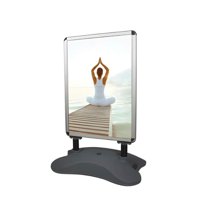 Idéal pour indiquer l’emplacement de votre lieu de vente, ce Stop trottoir PLV OUTDOOR est équipé d’un réservoir en PVC lui garantissant une stabilité maximale. Vous avez également la possibilité de changer très facilement les visuels grâce au cadre clippant. De plus, votre visuel est protégé par une feuille de PVC transparente. Un affichage recto verso pour une communication visible de loin.