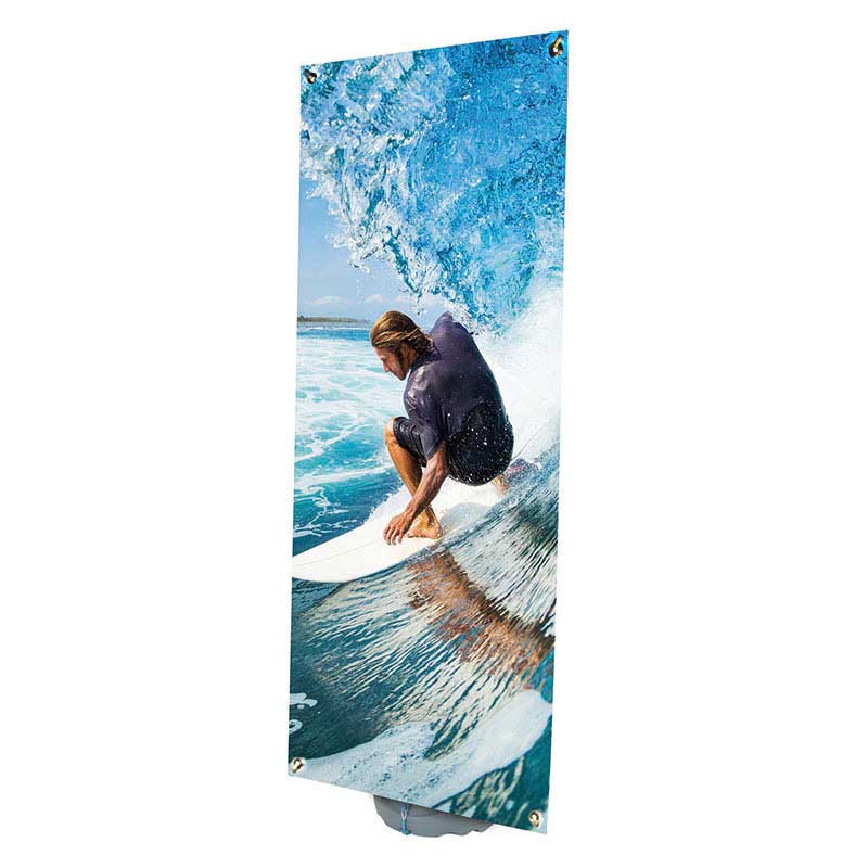 Le Totem PLV extérieur a été spécialement conçu pour communiquer en extérieur. Extrêmement facile à installer, et permettant de changer les visuels en quelques secondes, ce totem est équipé d’un pied réservoir lestable. Il est ajustable en hauteur et en largeur.