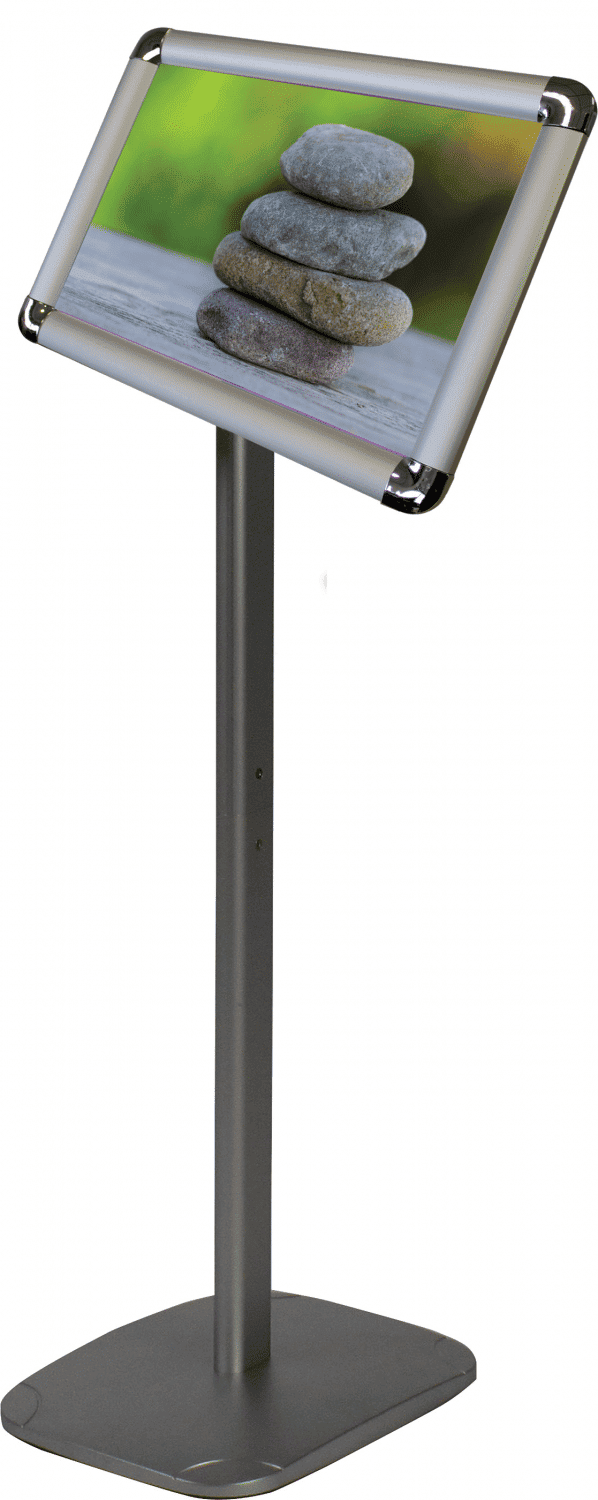 Le cadre sur pied clippant est un support de communication qui met en valeur vos documents (aussi bien en paysage qu'en portrait), comme une photo, une affiche ou un tableau. Protégés, vos documents auront ainsi une durée de vie plus importante. Il se compose généralement d'un cadre qui peut être en bois, plastique ou métal, et d'un pied qui permet de le maintenir debout sur une surface plane. Il s'installe dans les voies de circulation avec son pied afin de gagner en visibilité.