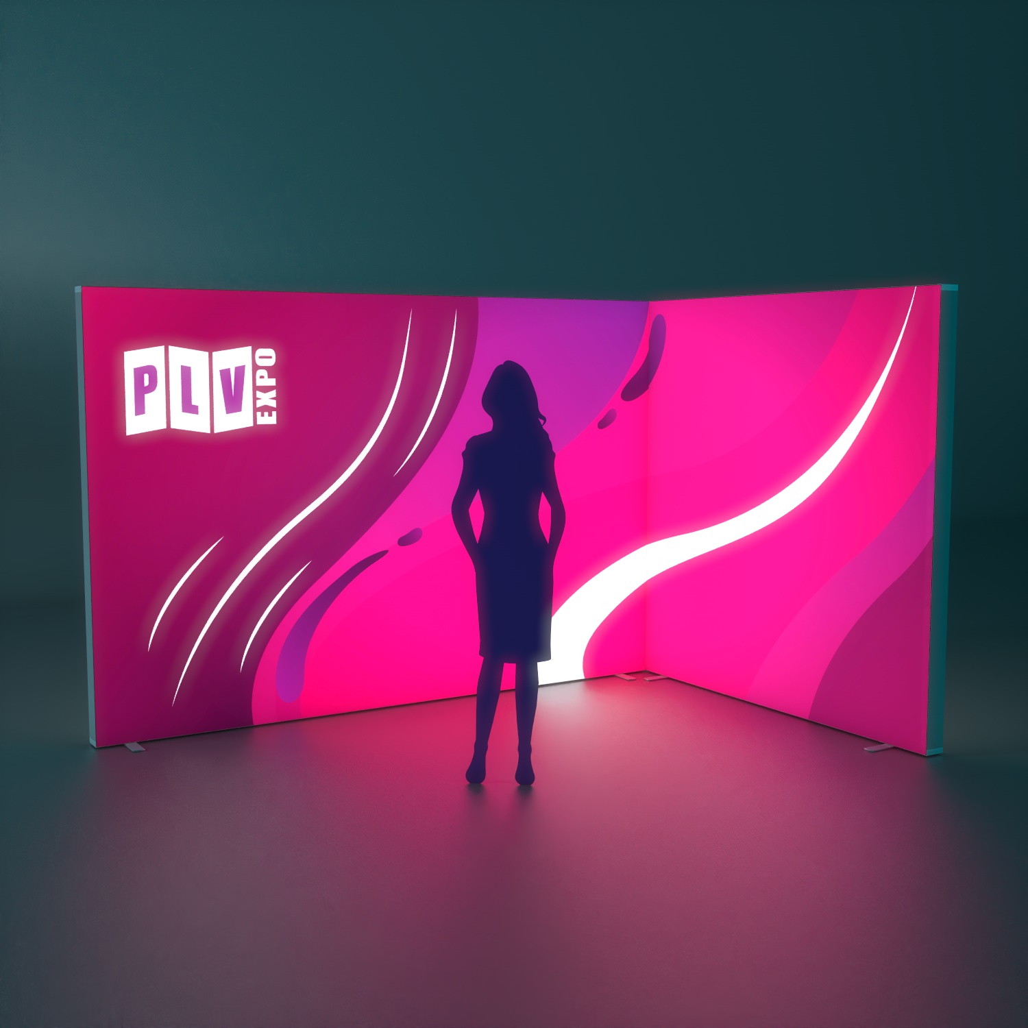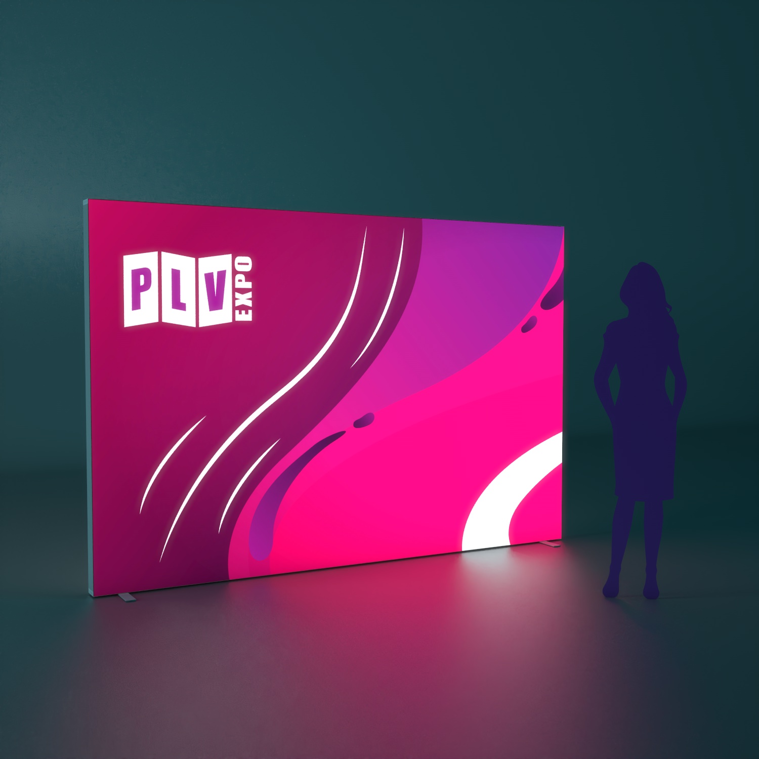 Le cadre rétro-éclairé LED 300x200 est le choix idéal pour vos stands, événements, et salons. Ce grand mur d'images lumineux est conçu pour capter l'attention à distance grâce à son éclairage intégré. Spécialement conçu pour offrir un éclairage de fond uniforme sur des visuels textiles diffusants, les LED garantissent un effet visuel spectaculaire à la fois au recto et au verso du cadre.