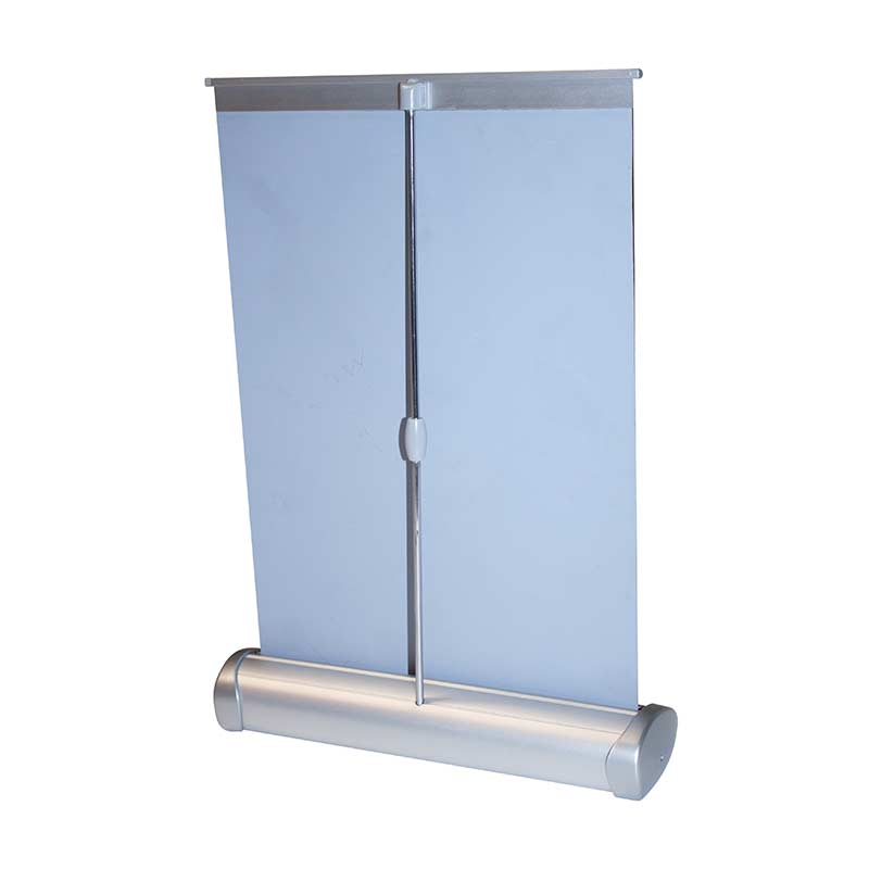 Le Mini enrouleur/roll-up, fabriqué à partir de plastique blanc, est à poser sur un comptoir ou un bureau. Léger, réutilisable et facile à monter, le mini roll-up est la solution idéale pour mettre en valeur une impression petit format de vos visuels lors des salons, ainsi qu'au sein de votre entreprise.