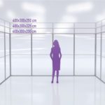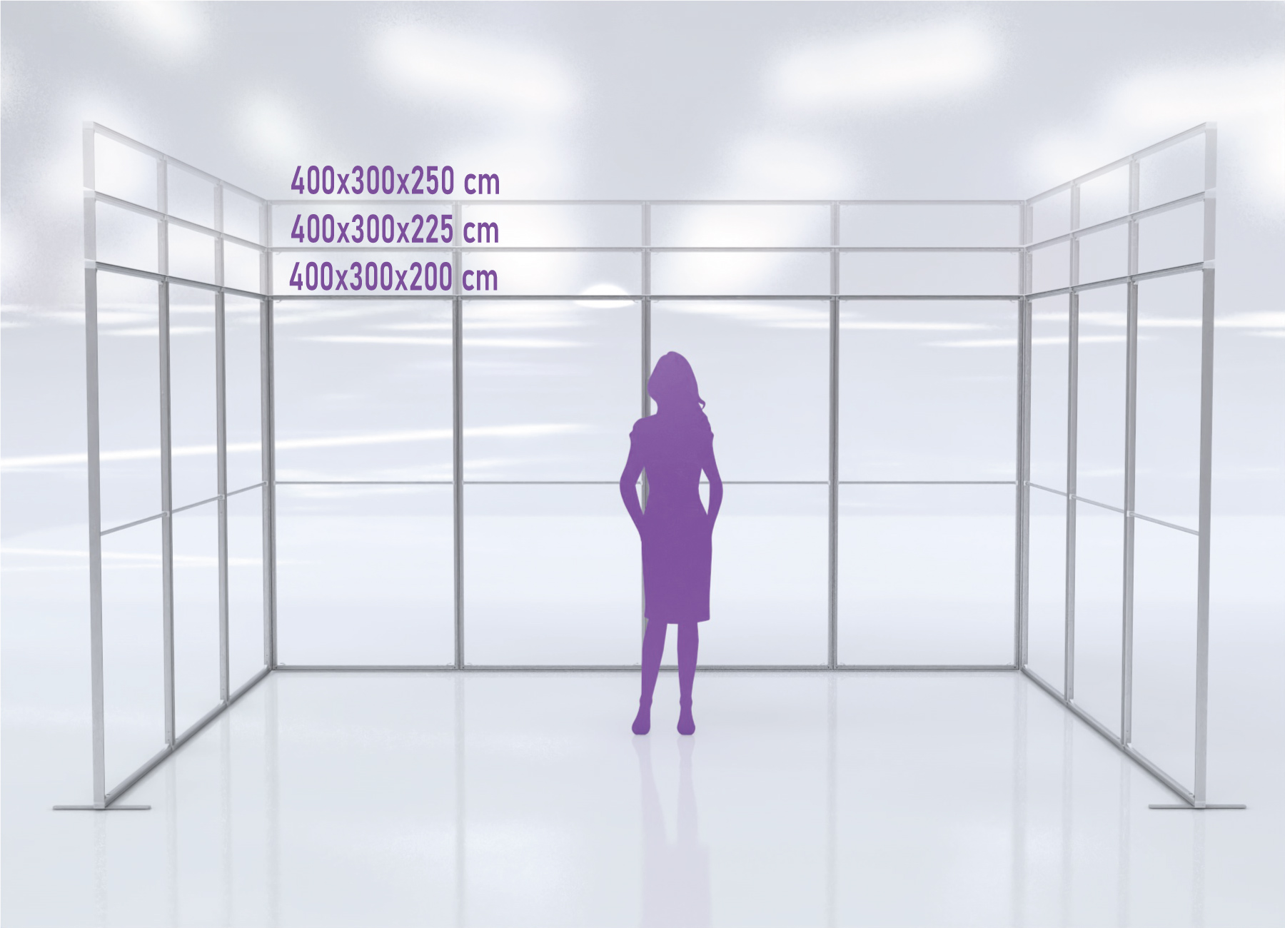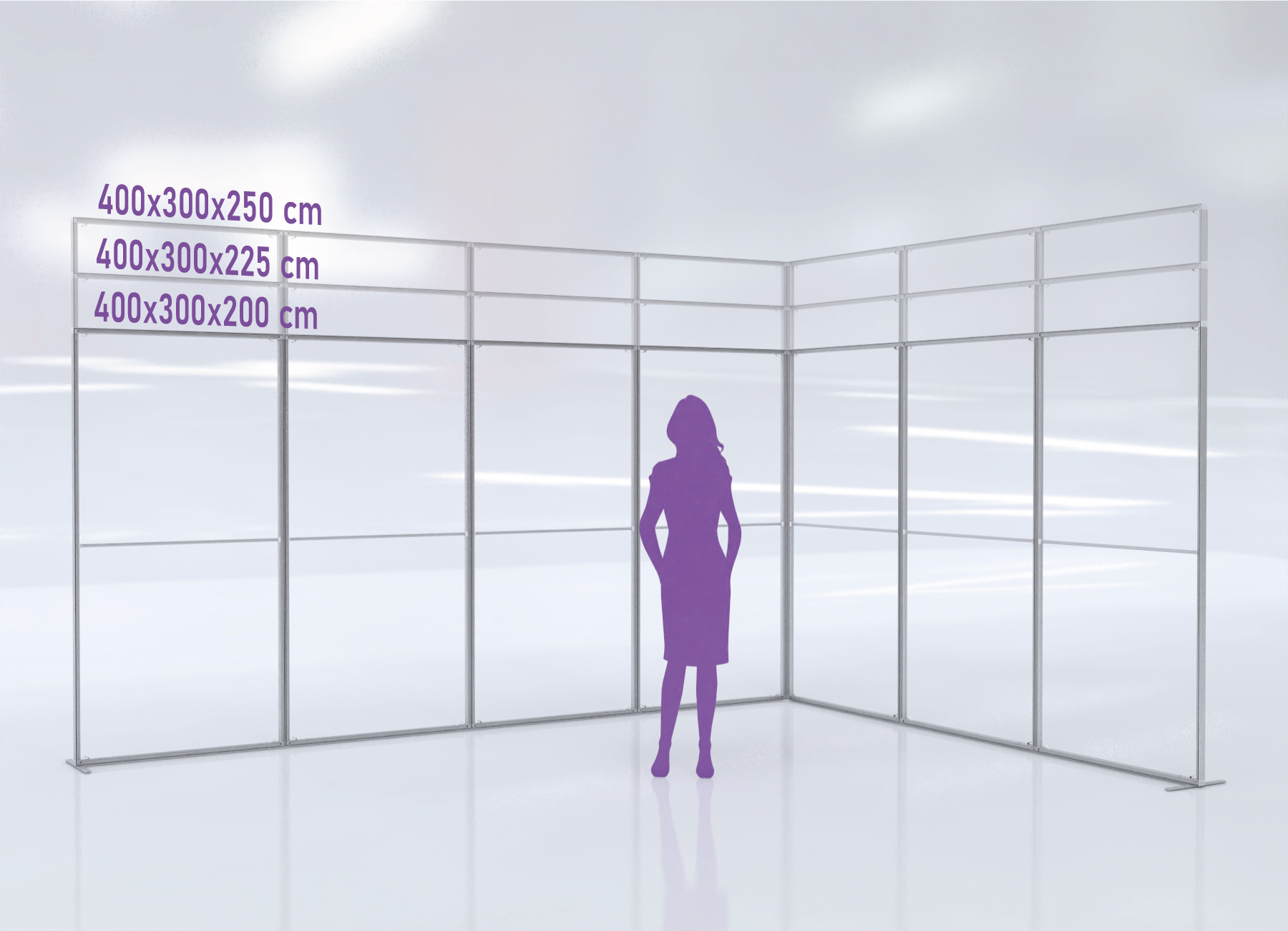 Ces structures en aluminium ont une dimension arrêtée de L100cm x H200cm x P4cm, et peuvent se rehausser pour atteindre une hauteur de 225cm ou 250cm.