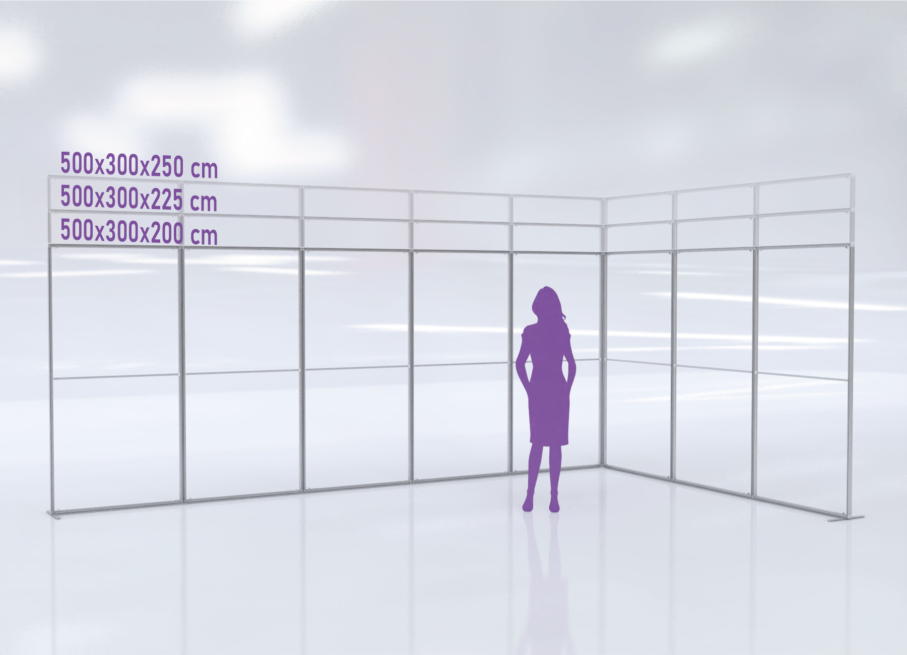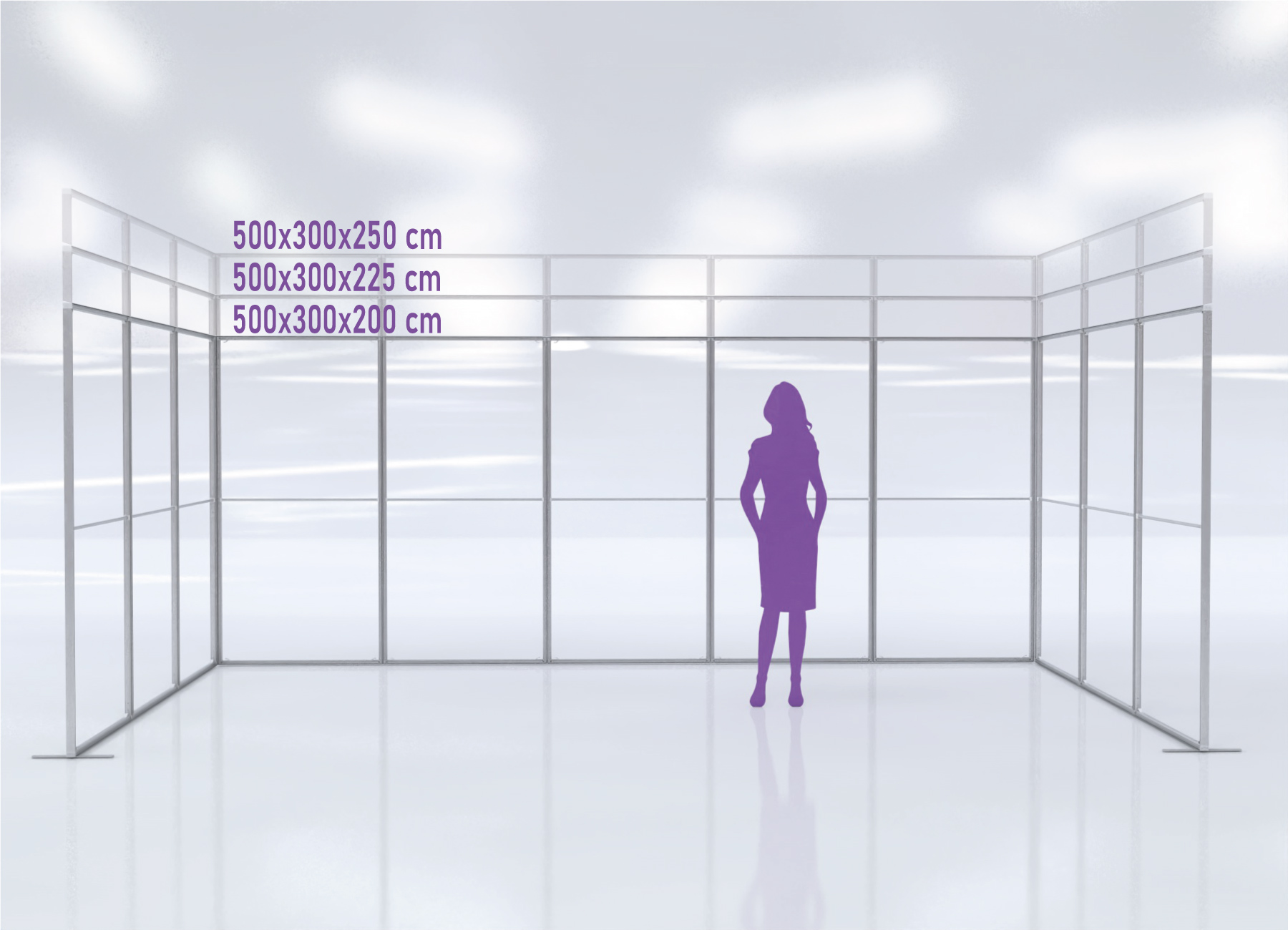 Ces structures en aluminium ont une dimension arrêtée de L100cm x H200cm x P4cm, et peuvent se rehausser pour atteindre une hauteur de 225cm ou 250cm.