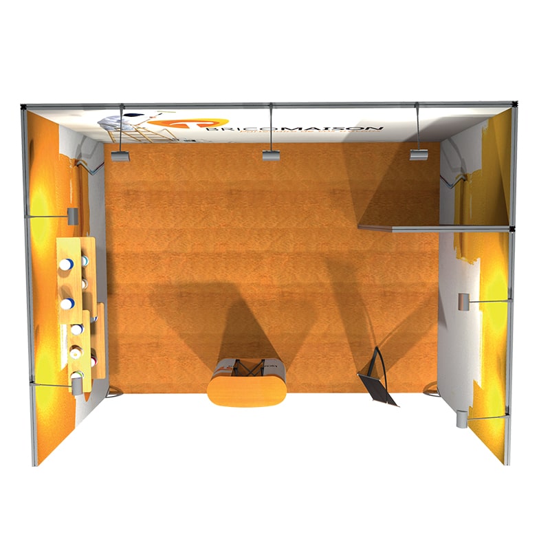 Le pack stand 3x4m a une réserve équipée d'une barre de seuil pour une plus grande stabilité. Le stand est conçu pour accueillir des visuels de très grands formats. Sur mesure et personnalisable, c'est l’atout majeur pour attirer et accueillir vos visiteurs est votre stand. Depuis plus de 15 ans, l’entreprise PLV-EXPO met à la disposition de ses clients son savoir-faire de standiste et leur offre une garantie de résultats.