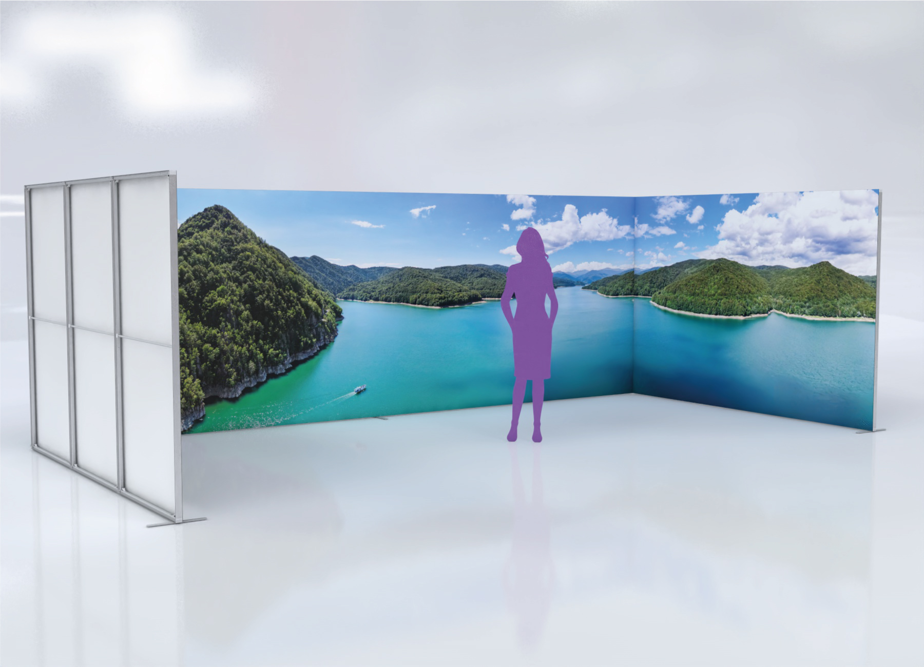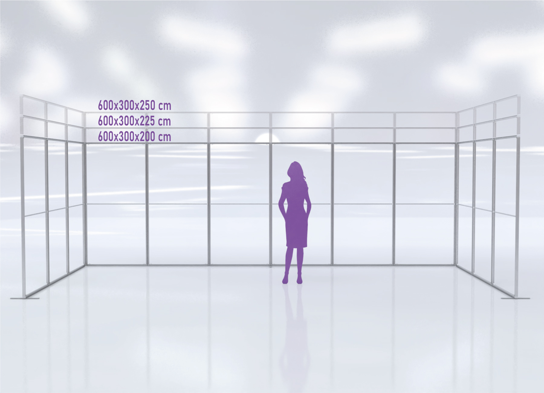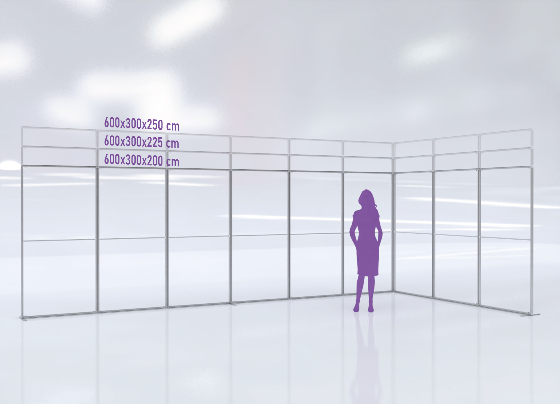 Ces structures en aluminium ont une dimension arrêtée de L100cm x H200cm x P4cm, et peuvent se rehausser pour atteindre une hauteur de 225cm ou 250cm.